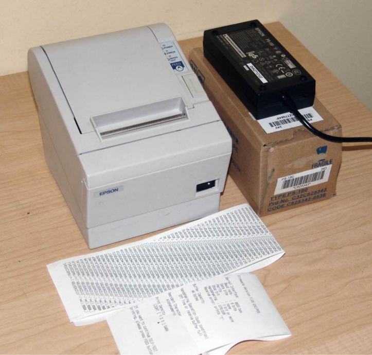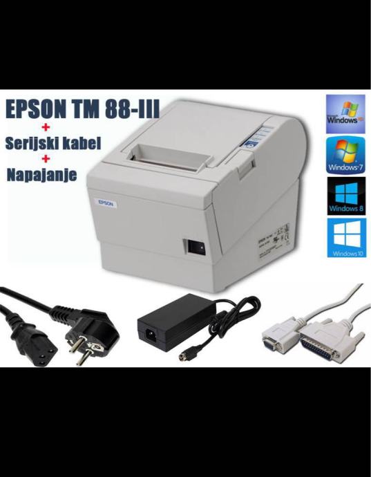 Pos printer Epson TM-T88 III serijski, odlično stanje. Paket uključuje napajanje, serijski kabel i naravno termo pisač.