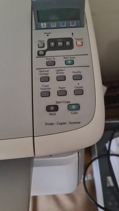 HP laserski printers kopirkom i skenerom ,ispis u boji.Radi, jedino treba zamijeniti cartidge u boji (žuti,crveni i plavi)