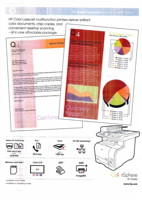 Umjereno korišten ali prilično star printer HP Color LaserJet CM1312 MFP s ugrađenim scannerom te može raditi kao kopirka.