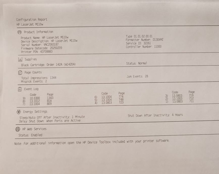 HP LASERJET M110WE LASERSKI PRINTER USB WIFI
