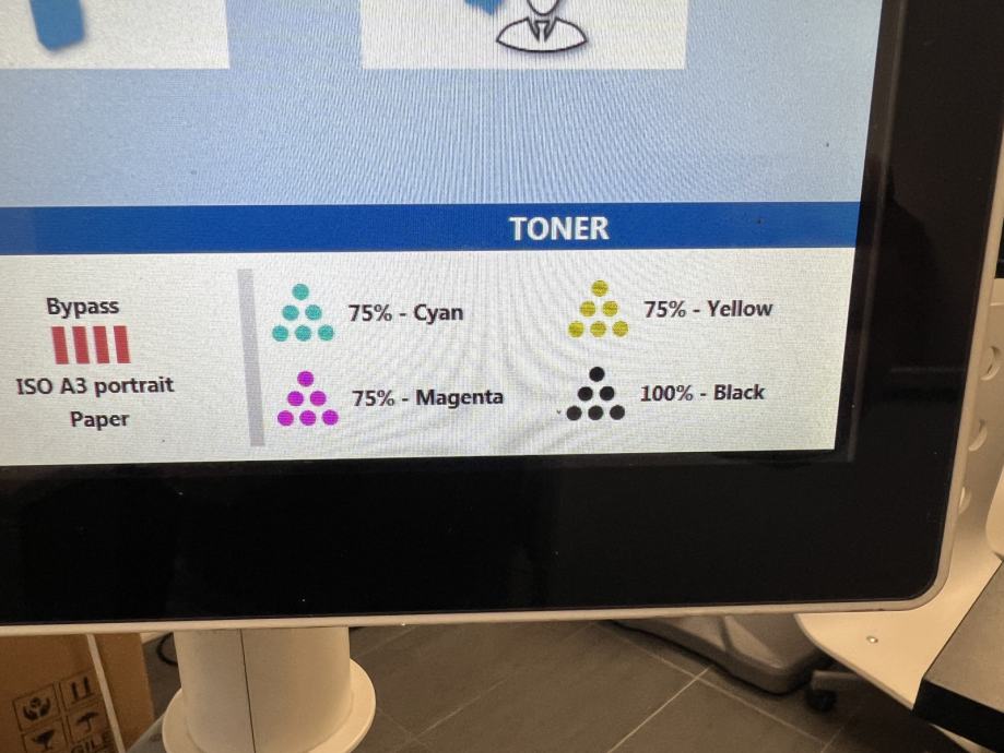 Prodam dobro ohranjen KIP 850 Multi-touch colour print system. Laserski tiskalnik velikega formata. Tisk do A0 format. Tonerji cyan 75%, Magenta 75%, Yellow 75%, Black 100%. Cena po dogovoru.