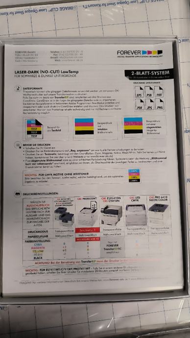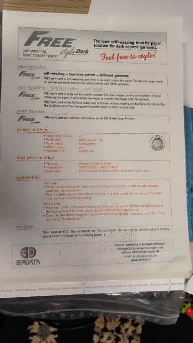 Uz printer dolazi još jedan polu potrošen bijeli toner, te crni toner koji je izuzetno malo korišten jer je primarna uporaba bila sa white tonerom na tamni tekstil.