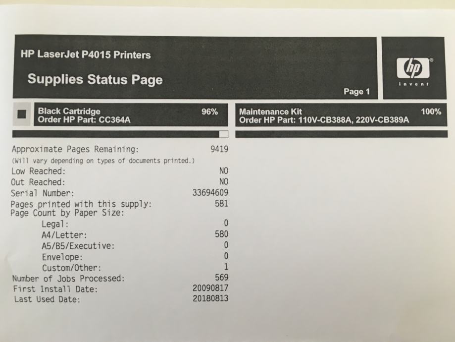 Na prodaju je printer HP P4015tn u izvrsnom stanju (9/10), sa novim punim original HP tonerom, novi maintenance kit (fuser, gumice i rolice) postavljen u njega, korišten u jednoj manjoj firmi, ladica za 3 tray još zapakirana u original foliji (nikad korištena), fizički printer izgleda kao nov (nije "požutio" izvana) isto kao i sve komponente u njemu, bez garancije...