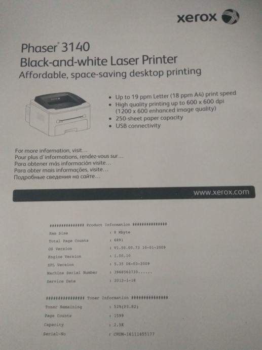 Korišten za kućne potrebe, do sada iskrišten samo 1 toner.