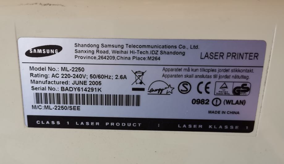 prodajem . ML2250 je max 1200 x 1200 točkica po inču ili DPI 22 stanice u minuti zagrijavanje je oko minute i pol početno.