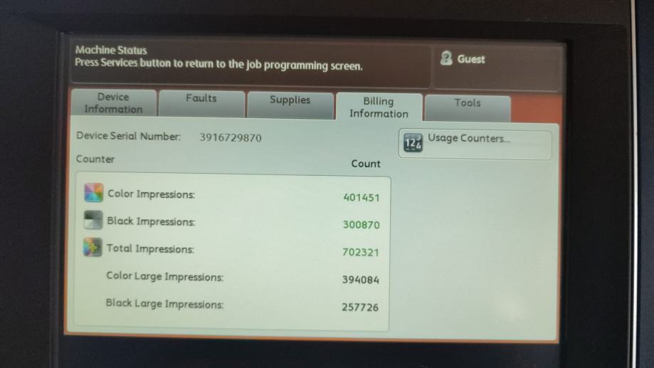Prvi vlasnik. Printer je kupljen novi u Hrvatskoj i plaćen cca 14.000 eura.