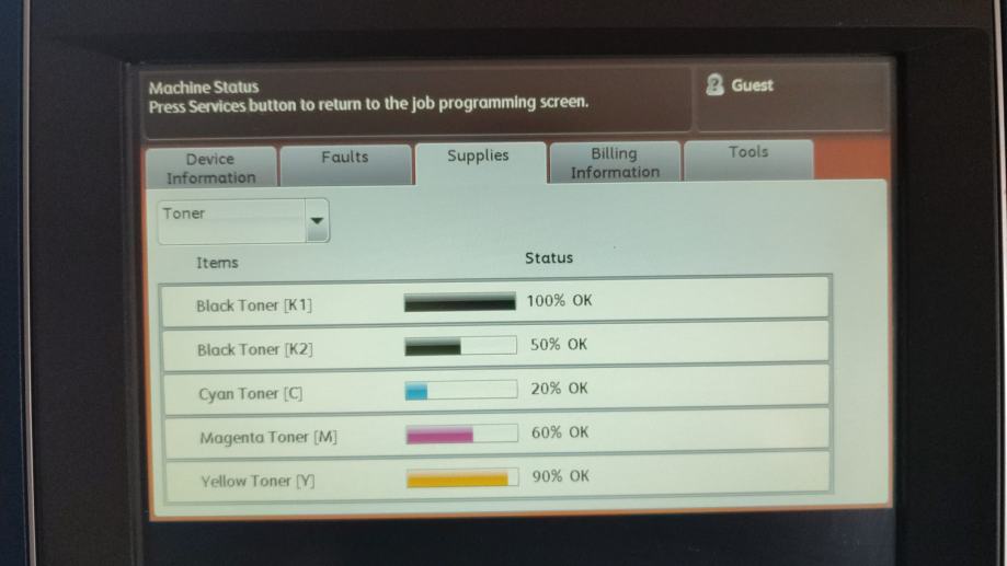 Svih 5 tonera CMYKK na 50-100%.