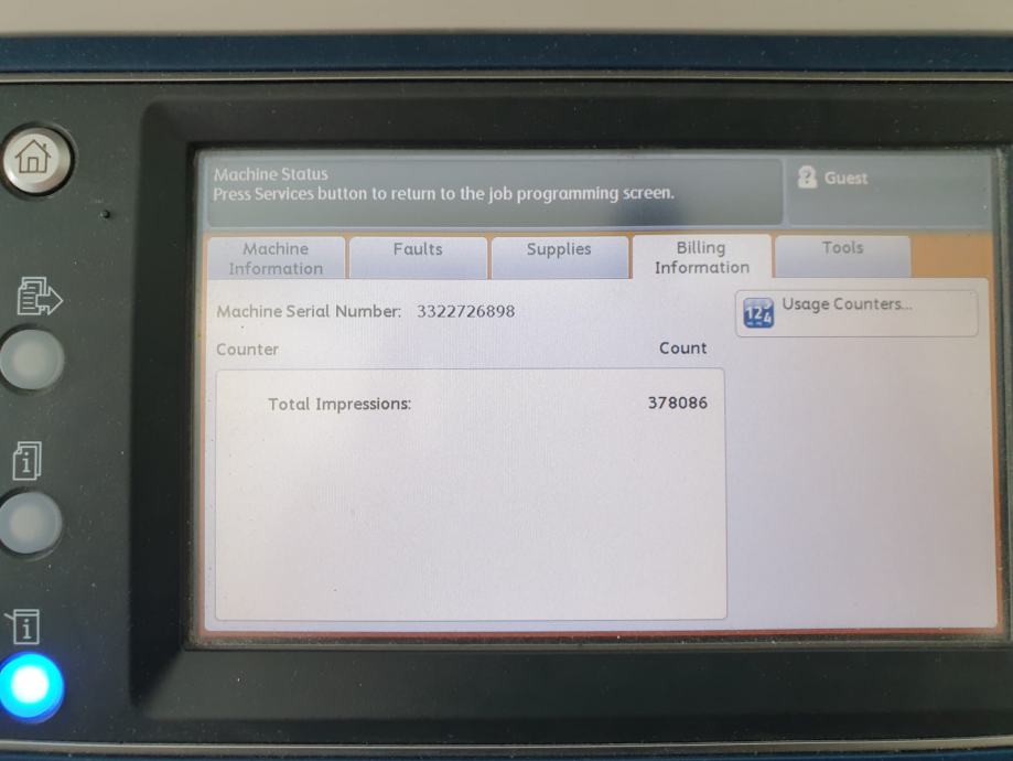 Pisač je u ispravnom radnom stanju, a stanje brojčanika je prikazano na fotografijama.