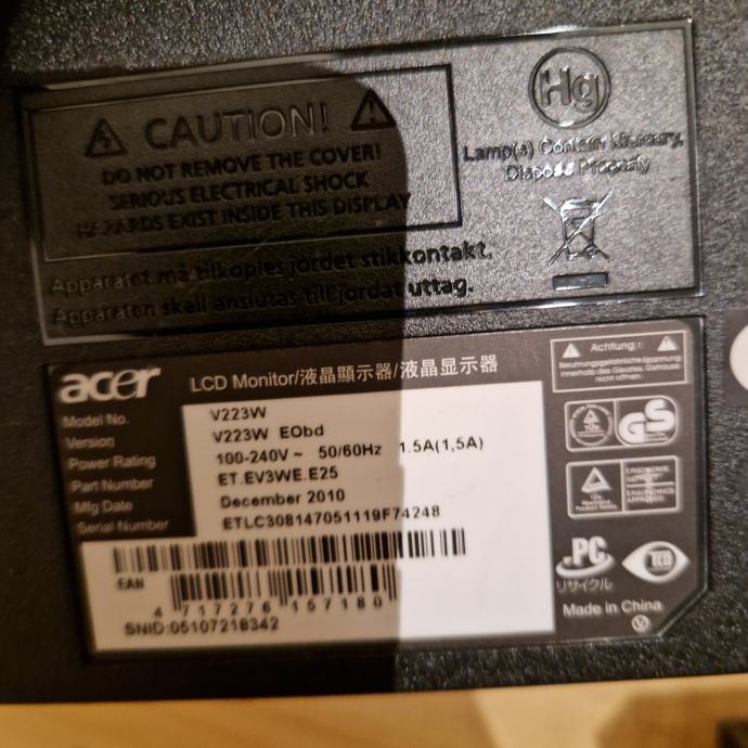 Monitor Acer V223W, 2 Komada, jedan bez stalka, 1680x1050, TN, 22 inch, DVI, VGA