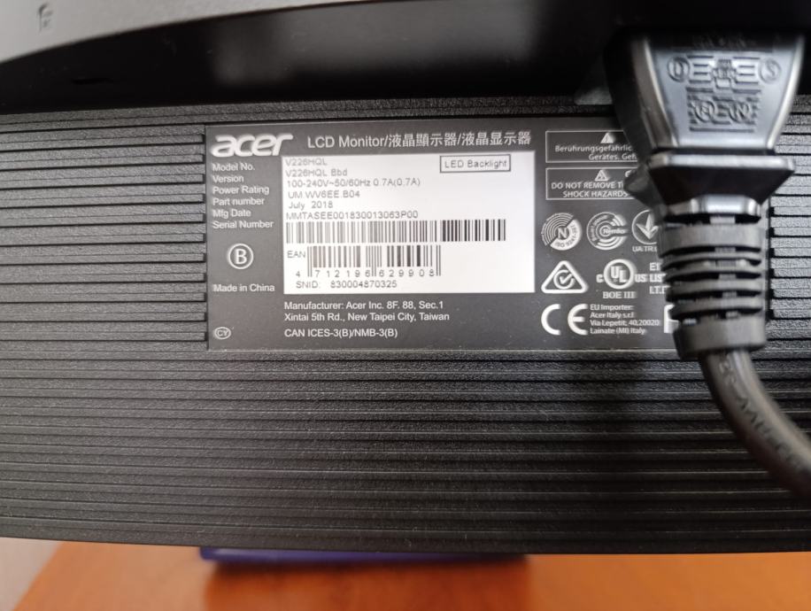 Prodajem Acer V226HQL monitor za PC.