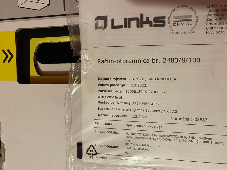 Monitor je kupljen u 3. mjesecu 2022. godine (vidljivo na računu). Posjeduje još godinu dana garancije.
