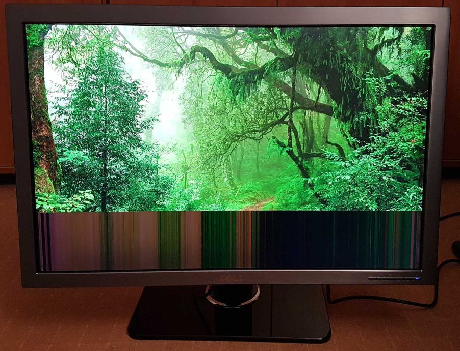Poluispravan 30" monitor, donja četvrtina display panela ne radi, vjerojatno kontakti na LCD panelu ili TCon board. Za dijelove ili za dobrog majstora :)