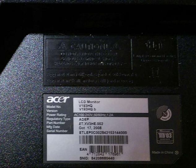 Acer 19" - ostecena matrica u donjem desnom kutu (nema stalka)