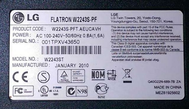LG 22" - pokvaren panel napajanja,kozmeticko stanje odlicno,stalak,orginalna kutija