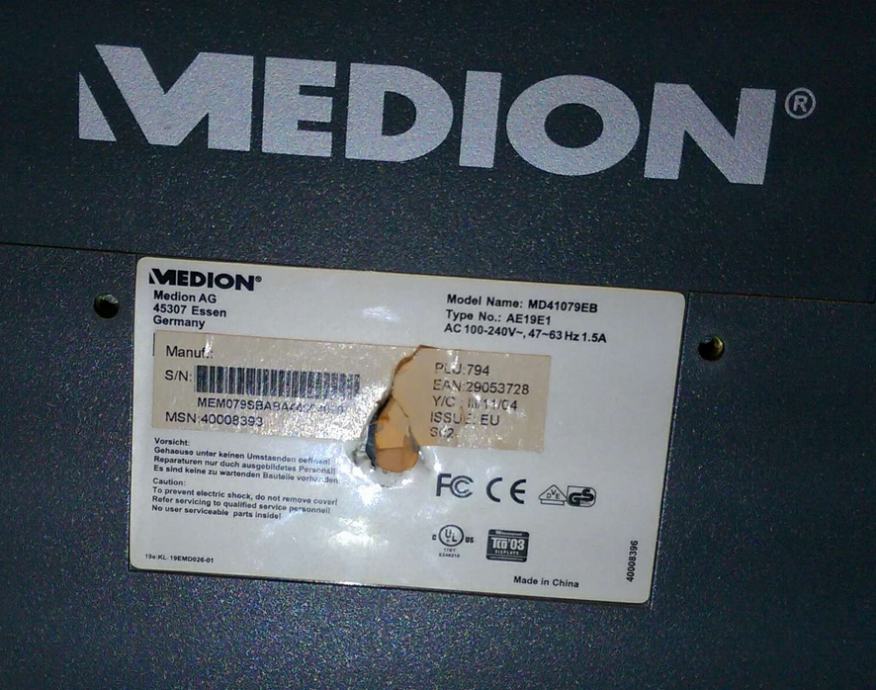 Medion 19" - predpostavka panel napajanja,nije deteljno testiran