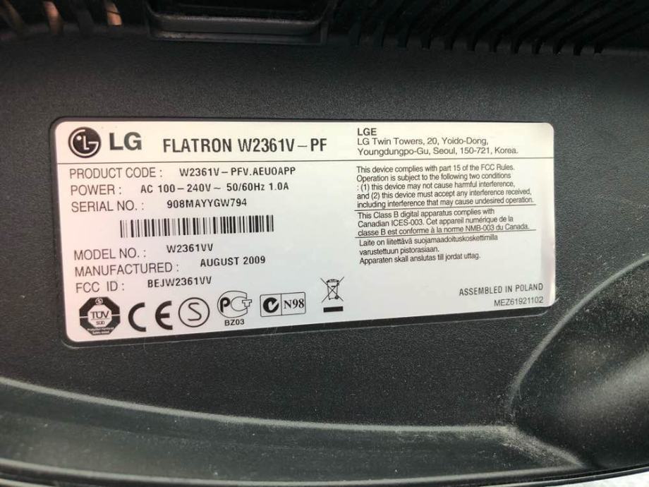 Korišteni LG Flatron W2361V-PF. Slika odlična.