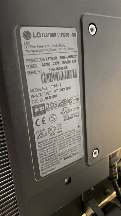 Jako malo korišten LG LCD monitor 17" L1750S s pripadajucim priključcima VGA kabel i kabel napajanja.