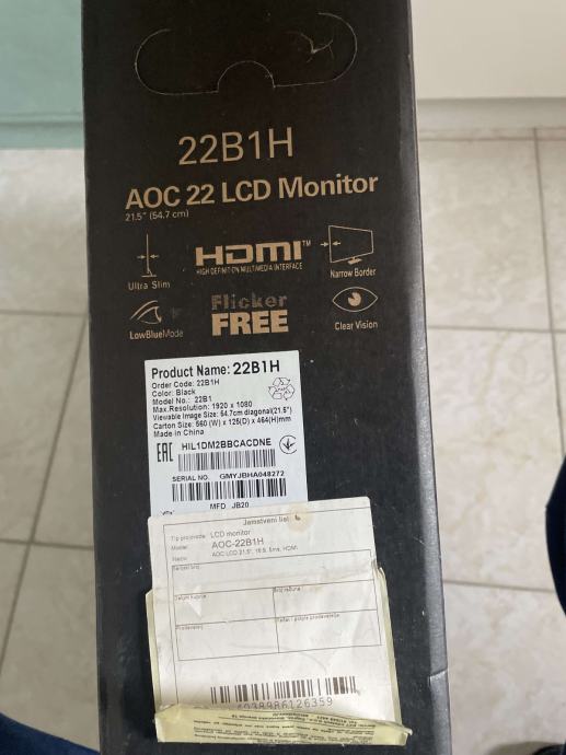Monitor AOC 21,5" dijagonale, potpuno ispravan, uz njega dolazi kabal za napajanje, vga i hdmi, ako treba dajem i display port kabel.