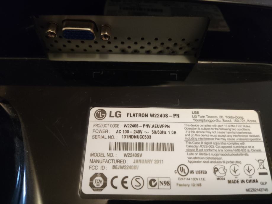 MONITOR LG FLATRON W2240S 1920 x 1080 VGA TILT -5º (front) ~ 15 º(rear