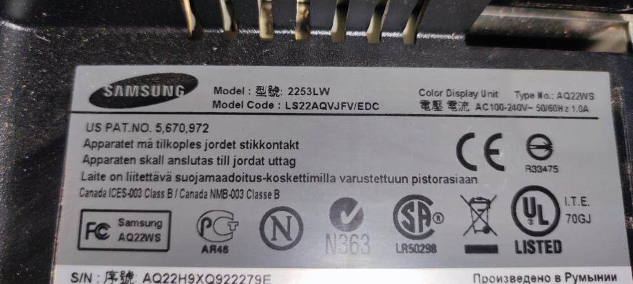 Monitor samsung 2253LW ispravan