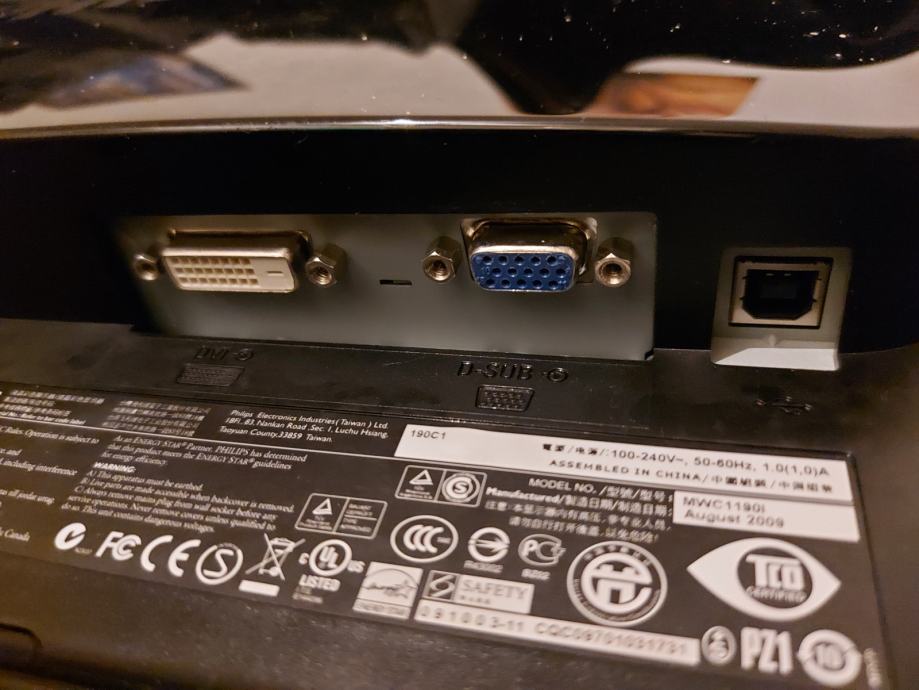 - DisplayPort, DVI, USB, VGA (D-sub)