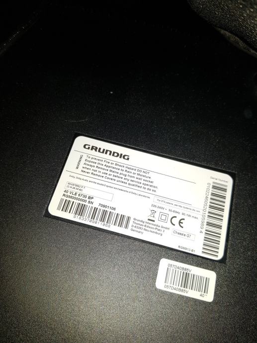 Grundig 40 VLE 6730 BP, nije ispravan, razbijen ekran u kutu, zvuk, napajanje, matična sve radi osim što nema slike.