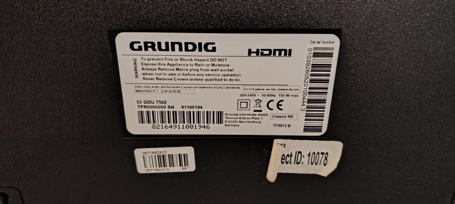 Prodajem Grundig LCD televizor, model 55 GDU 7502. Televizor je većeg formata s tankim okvirom i postoljem. Uređaj se prodaje kao neispravan, ekran neispravan.