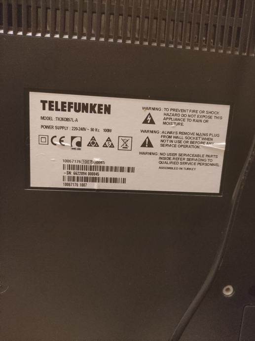Prodajem rabljeni TV Telefunken 26" sa daljinskim