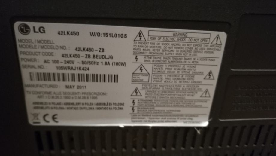 LG 42 LK450 LCD TV, djagonala 106cm, Full HD 1920x1080p, 50Hz, Audio Output 10W+10W, 3 HDMI + 1 USB priključak