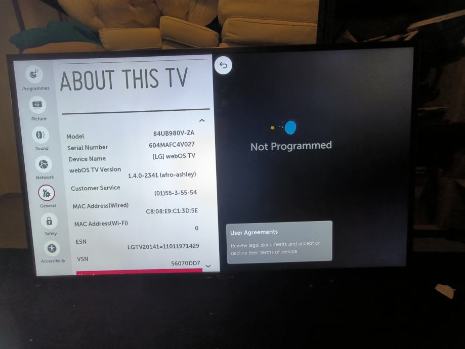 Prodajem legendarni LG televizor dijagonale 84 inča (213 cm), model 84UB98V-ZA. Televizor je bio sam vrh LG-eve ponude, poznat po vrhunskoj kvaliteti izrade i nevjerojatnom zvuku.
