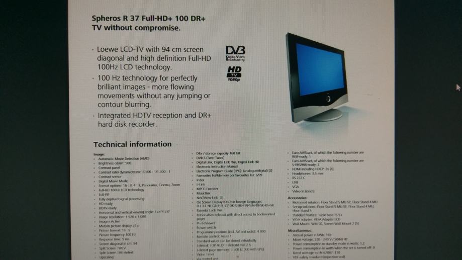 Review: http://www.techradar.com/reviews/audio-visual/televisions/plasma-and-lcd-tvs/loewe-spheros-r37-masterpiece-104827/review (ovo je starija verzija koja nije bila Full HD)