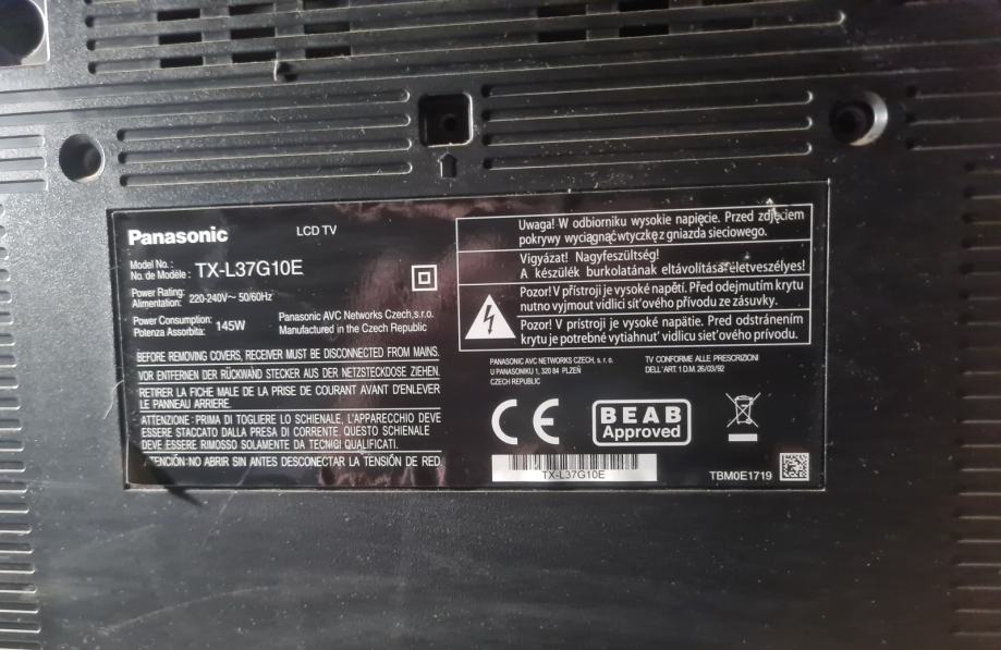 TV Panasonic LCD Televizor TX-L37G10E ima razbijen ekran a sve drugo je ispravno za dijelove ili popravak, cijena dogovor
