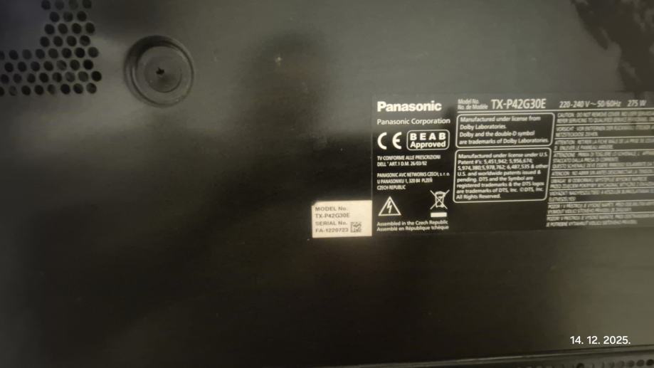 Prodajem Panasonic plazma televizor TX-P42G30E, dijagonale 42 inča (106 cm).