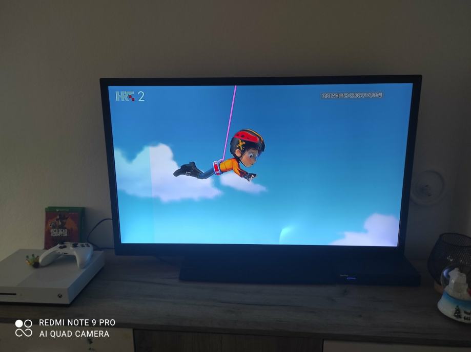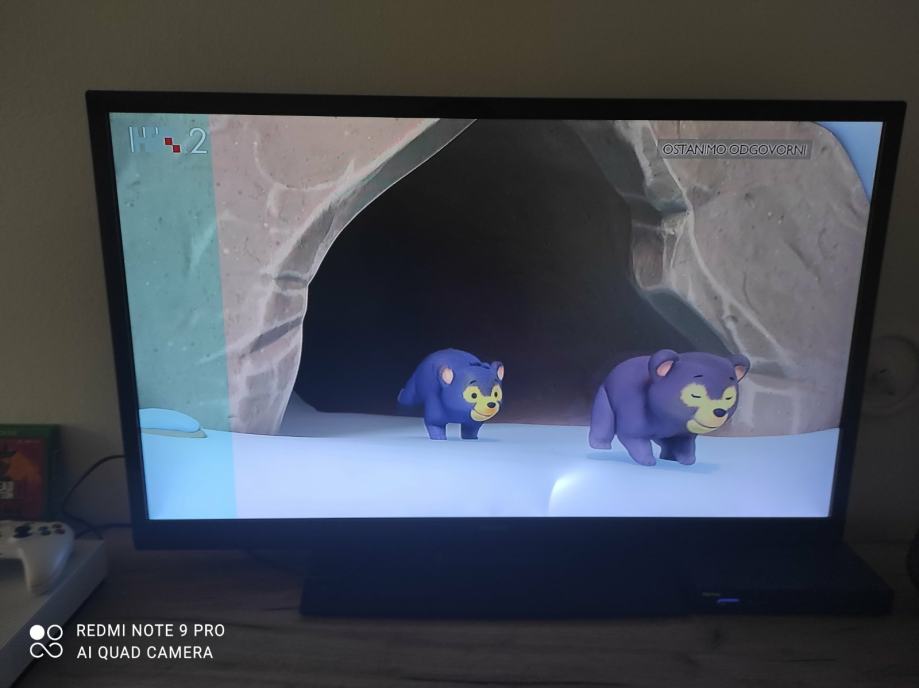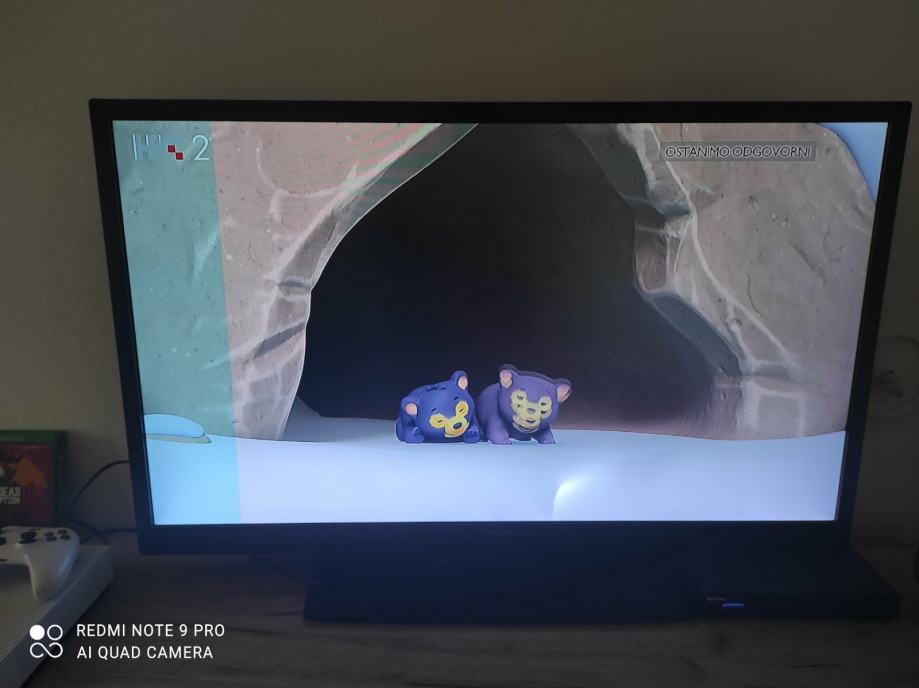 Veliki tv ,sve radi,samo ima lijevo okomitu plavkastu nijansu...koja se u većini vremena nekuži toliko.