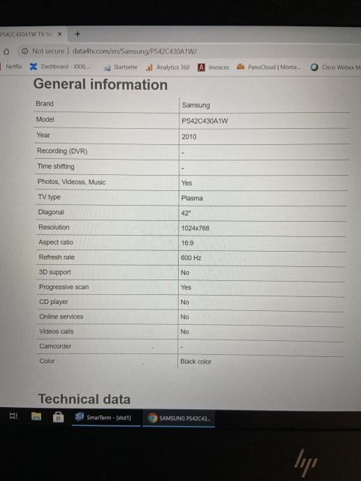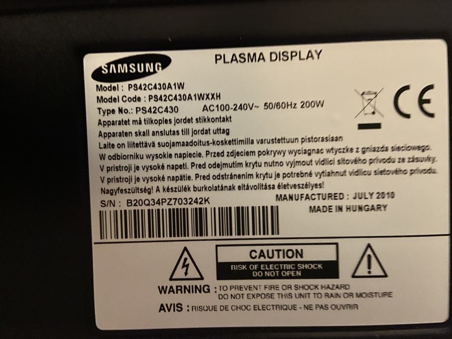 Prodajem rabljeni Samsung plasma TV 42. U dobrom stanju i potpuno funkcionalan.