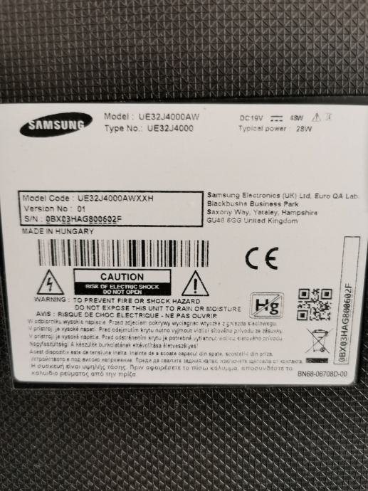 Samsung UE32J4000AW. Display diagonal: 81.3 cm (32"), Display resolution: 1366 x 768 pixels, HD type: HD, Screen shape: Flat, Motion interpolation technology: PQI (Picture Quality Index) 100. Digital signal format system: DVB-T, DVB-C. Product colour: Black