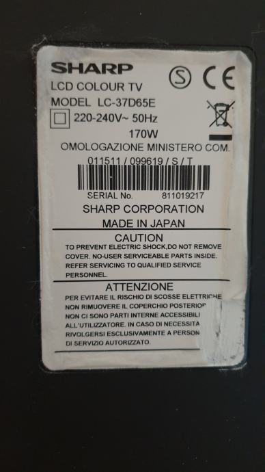 SHARP AQUOS LCD LC-37D65E 37", 94 cm, full HD 1920x1080, DVB-T, 3 HDMI