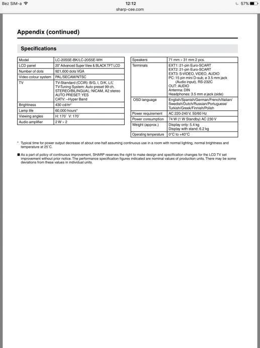 - SHARP AQUOS LCD Colour TV LC-20S5E-W - http://www.sharp-cee.com/cps/rde/xbcr/documents/documents/om/11_lcd-tv/LC20S5E-BK-WH_OM_GB.pdf