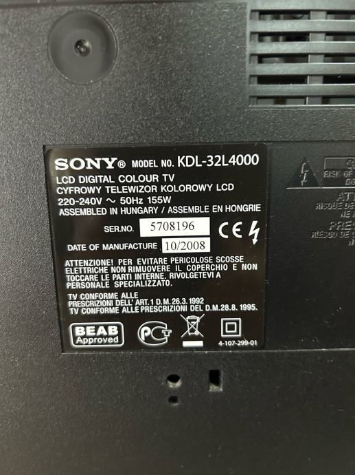 Sony bravia LCD TV KDL-32l4000, sve normalno radi. Dijagonala 82cm
