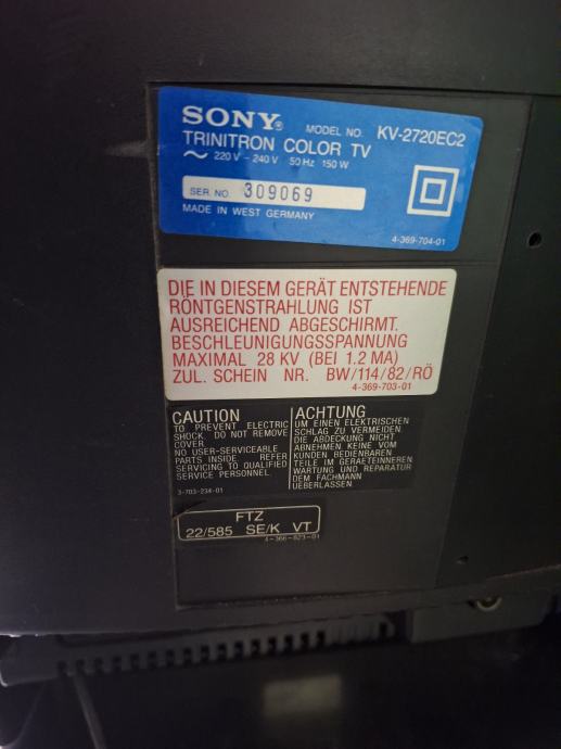 Veliki prastari tv Sony Trinitron nekad bio vrh kvalitete može služit kao ukras jer budi siječanja na stara vremena. Velik je i jako težak!
