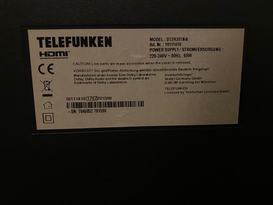 Prodajem polovan Telefunken D32H281N4I televizor s dijagonalom ekrana od 32 inča. Radi se o LCD tehnologiji prikaza, crne boje, s postoljem. Od priključaka ima 2 HDMI ulaza i 1 USB priključak, što je sasvim dovoljno za standardno korištenje.