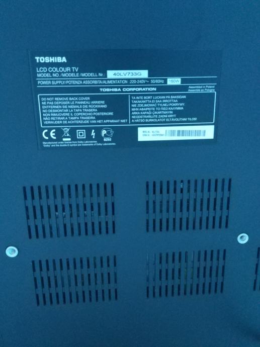 Prodajem Toshiba 40LV733G REGZA LV Series - 40" LCD TV u savršenom stanju bez ikakvih oštećenja i ogrebotina. TV je star 7 godina i dalje radi besprijekorno, na njemu je ugrađeno i osvjetljenje gdje se boje i vrsta osvjetljenja mogu kontrolirati sa daljinskim uređajem.