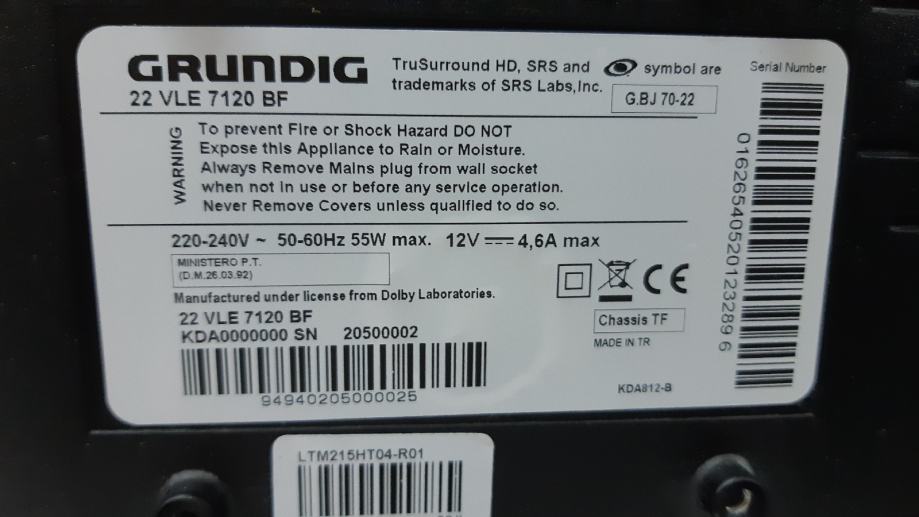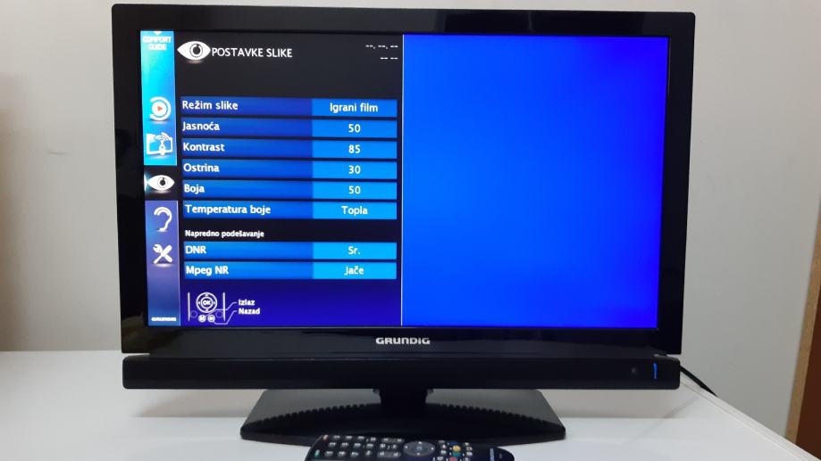 TV Grundig FullHD, 56 cm, malo korišten. Mogućnost napajanja na 12V (nije uključen). Nema novi DVB-T2 prijemnik.