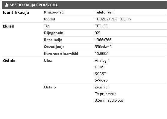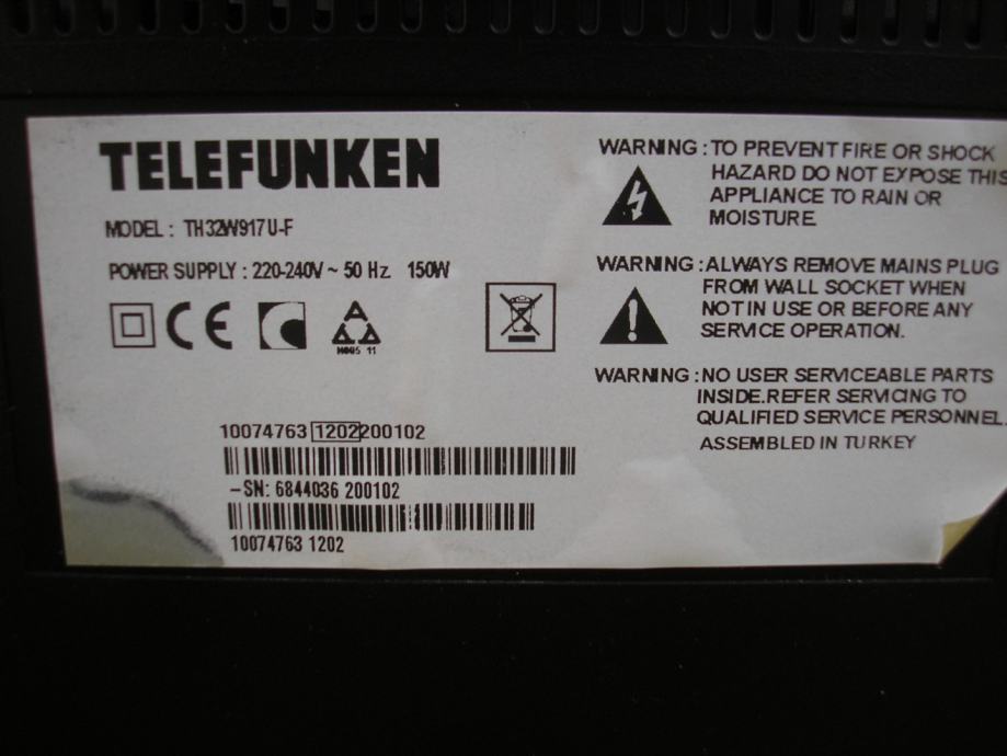 TV LCD 32" 82cm Telefunken Model TH32W917U-F HD TFT 150W