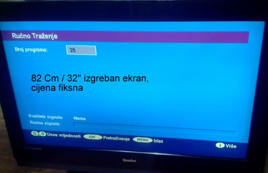 Jedan Quadro na trećoj i četvrtoj slici, dijagonale 82 cm / 32 inča, model: TFT-32KT10, star 10 godina, sve radi, usmena garancija 10 dana, ima SCART i HDMI 2X, original daljinski, ekran IZGREBAN na više mjesta, cijena 40 € FIKSNO - PRODAN oko Božića - možda bi imao nešto slično... i ovaj drugi 22 inča isto za 40 € - detaljno opisan u nastavku oglasa:
