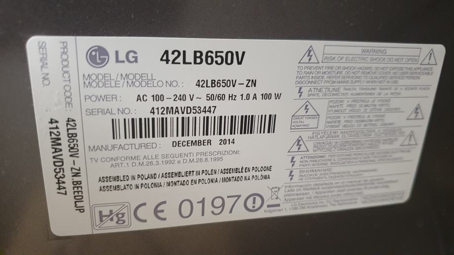 Televizor LCD 42" LG model: 42LB650V