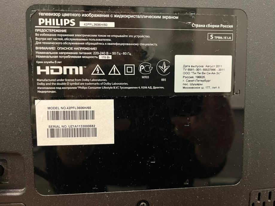 LCD TV Philips model 42PFL3606H/60, star 15 godina. Sve u funkciji.