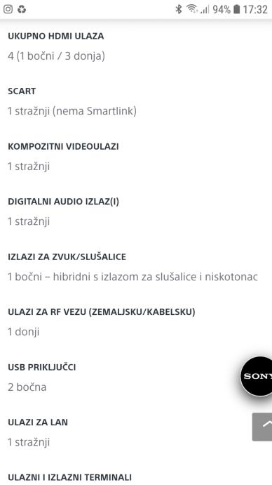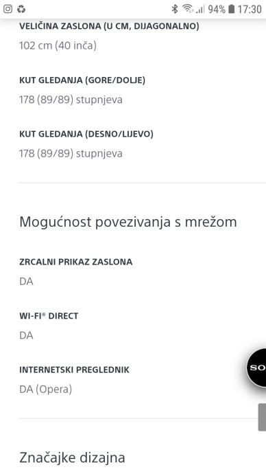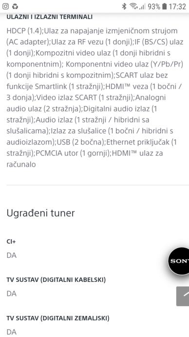 TV Sony - BRAVIA 40-102cm Energetska oznaka A plus-model KDL-40W705C made in-Japan - Ocuvan - malo koristen.. Nazvati na br. 091 610 5480