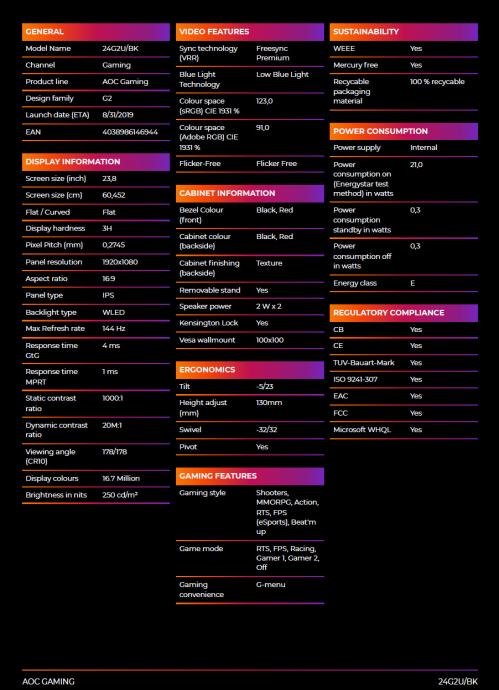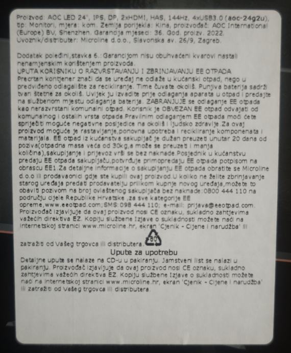 Prodajem 2 komada monitora AOC 24G2U/BK od 24", IPS panel, 144hz, AMD freesync premium.