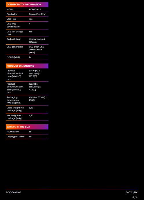 - DisplayPort, HDMI, USB, VGA (D-sub)